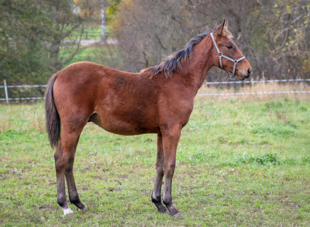 Fölet är med sin mamma på Hyllstofta Stuteri, Klippan.
